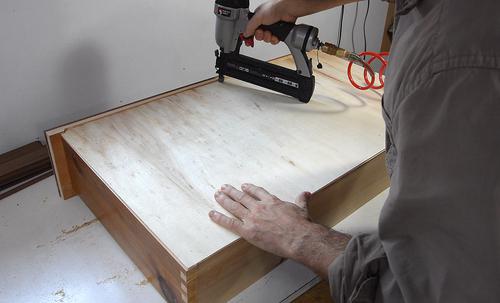 Brad nailing on a thin piece of plywood. The brad nails aren't