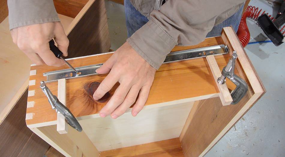 I mounted the outer part of the full extension drawer slides in the dadoes