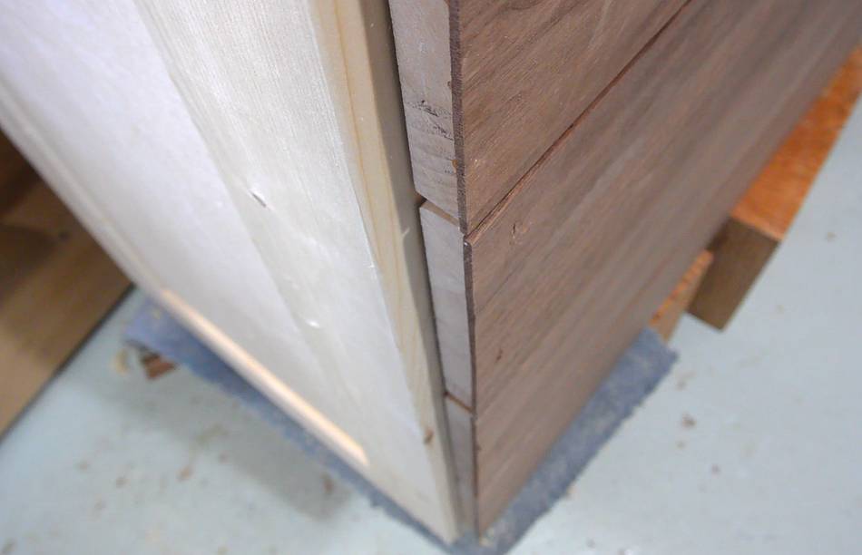 I hadn't trimmed the veneer that I glued on the front, just in case I needed