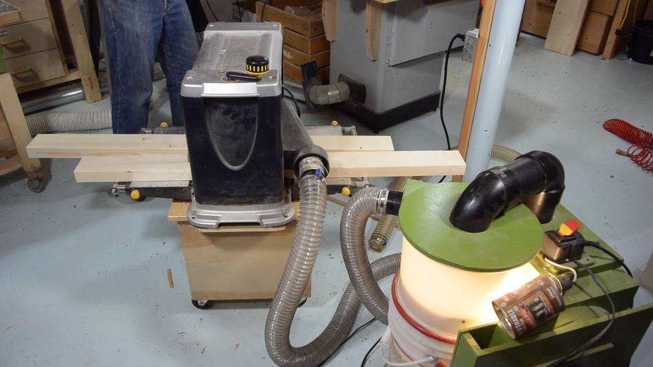 Then through the thickness planer, catching the shaving with my