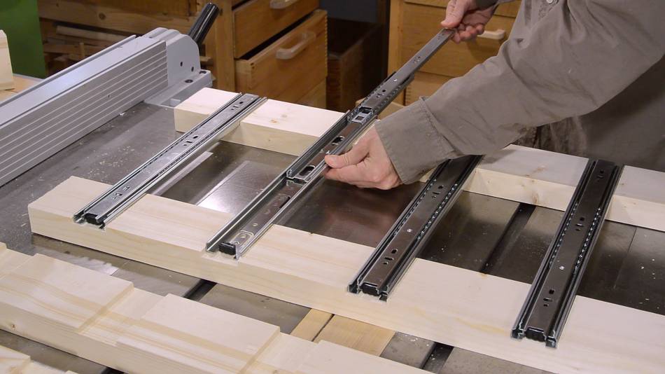 the positions for the drawer slides.