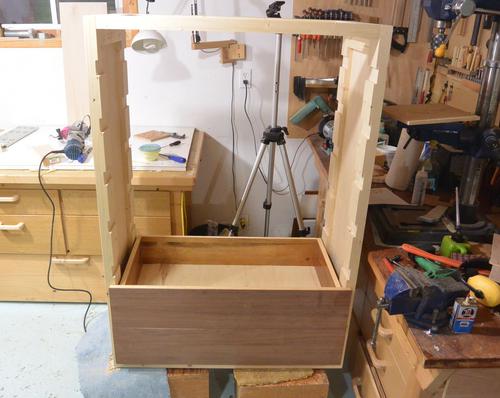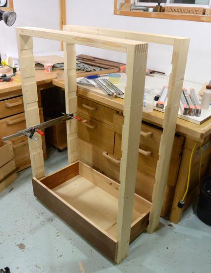 Dry fitting the front and back frames, and making sure a drawer