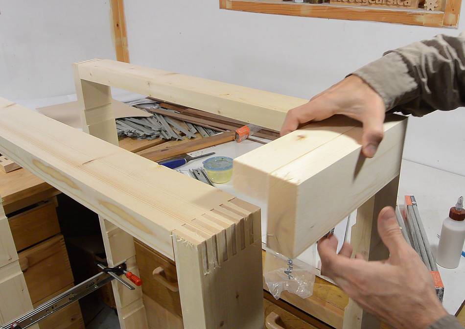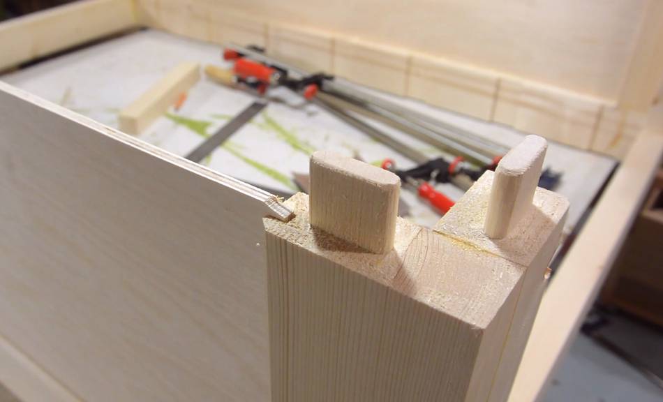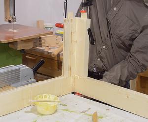 Two pieces, with a tenon each, form the corner. Here I'm checking the fit.