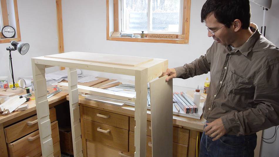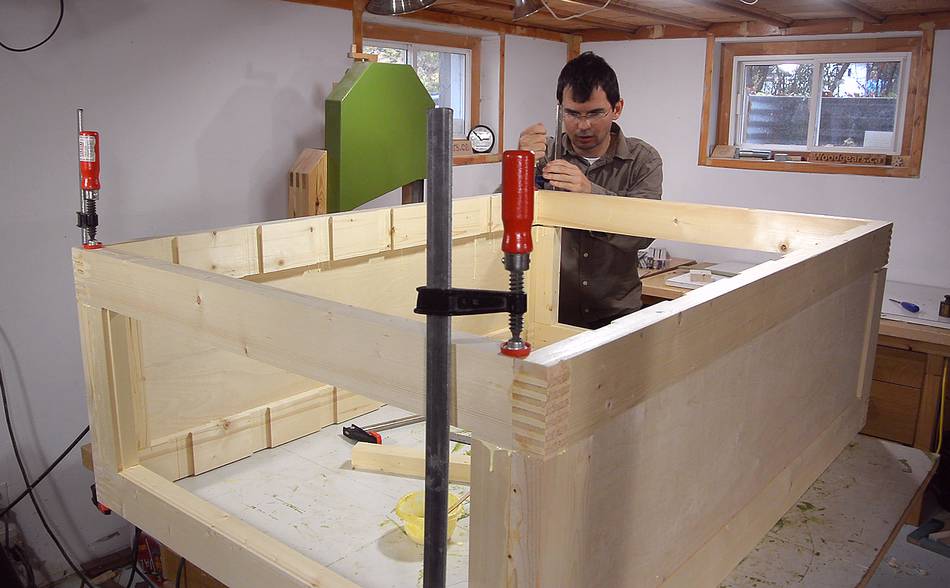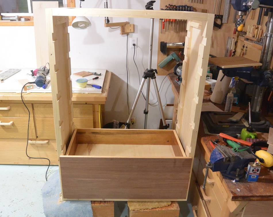 Most people prefer to build the cabinet before making the drawers, but for a cabinet