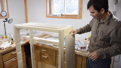 Dry fitting the side frame with the panel.