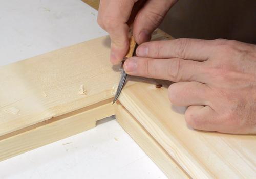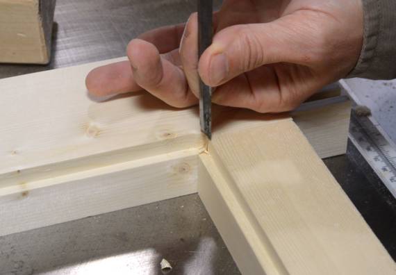 chisel the corners square so that a rectangular panel can be inserted.