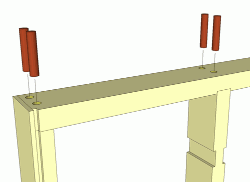 I assembled the front and back frames without drilling holes for the dowels.