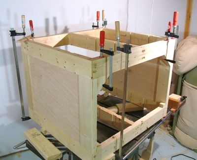 With the side panels in, and the fit checked, it was time to glue on the front frame.
