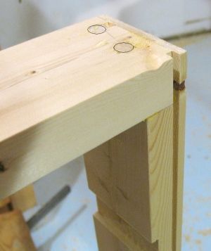 The picture at left shows the dowels in the corner. I had to highlight them on the photo