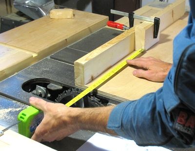With the mark for the width of the dado, I line it up with the blade, and then move the block