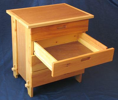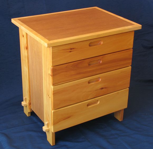 Knock down dresser![]() I built two identical knock down dressers during my Christmas holidays from university back in 1991. I had built a knock down desk the year before, so the logical companion to that was some knock down dressers. Being a co-op student at the time, I had to move every 4 months, so easy to move furniture had some very practical justification. Like the desk, I designed the dresser so it could be disassembled without any tools. But unlike the desk, the dresser does not rely on gravity to hold it together. You can lift the whole dresser by its top when it's put together. This was years before digital photography, or the web, so I didn't photograph the building process. But my brother briefly came in my dad's shop and snpapped a few black and white photos while I was working on it.
