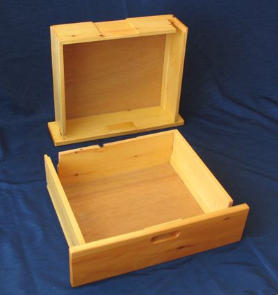 The nesting dresser drawersWhat made me actually decide to build the knock down dresser was the clever idea I had for quasi-nesting the dresser's drawers.Without being able to nest the drawers somehow, they wouldn't take up any less volume when packed. And without a reduction in volume taken by the drawers, there wouldn't be much point in collapsing the dresser's body.