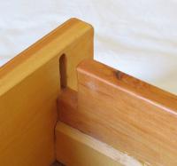 Shown here is the notch near the front of the drawer. I joined the sides by mortising them into the front. I didn't have the foresight to cut the mortise next to the notch shorter, so you can see part of it where the notch is.