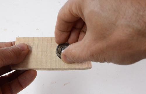 I figured it should be possible to grind a 7/8" Forstner bit down by a tiny bit to make a hole just the right size for one of these bearings.
