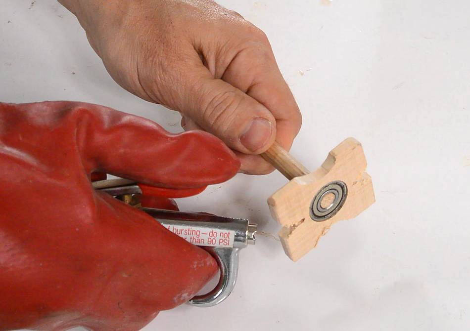 I don't have a use for fidget spinners, so I figured I'd spin it with compressed air until it exploded. But I had to cut some slots into the sides of it to weaken enough. With the extra notches around it, it made a sound like a high-revving engine as the air was blowing against it.
