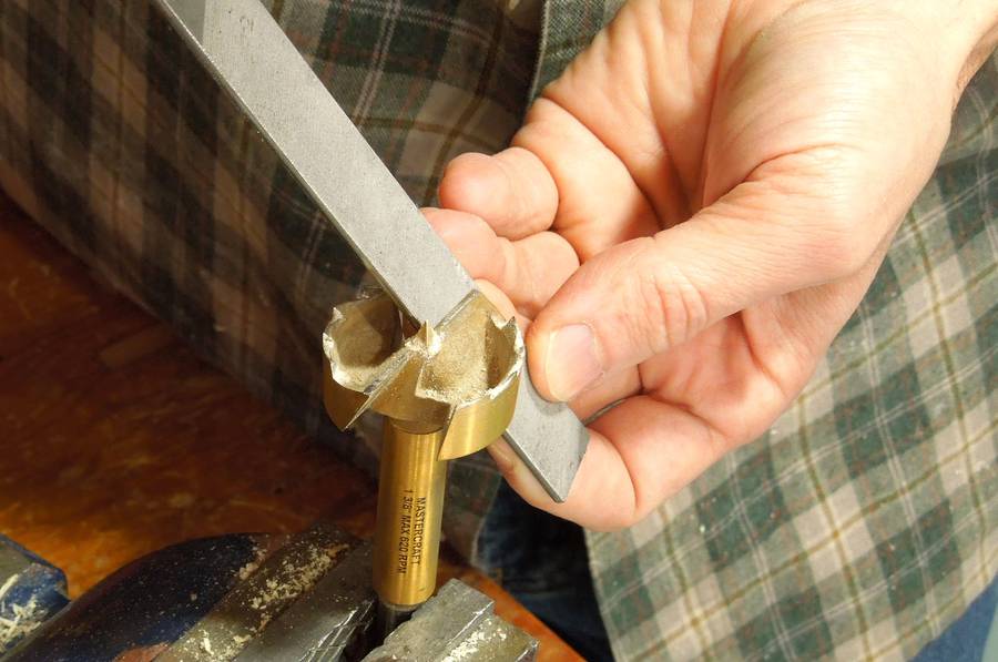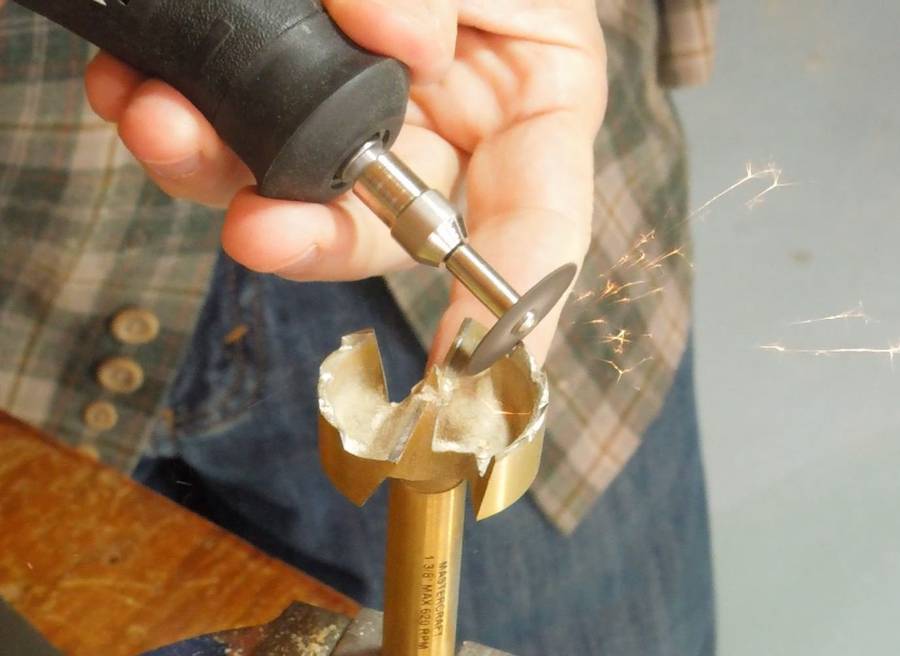 The teeth on these drills are best sharpened with a Dremel tool and a cutoff disk.
