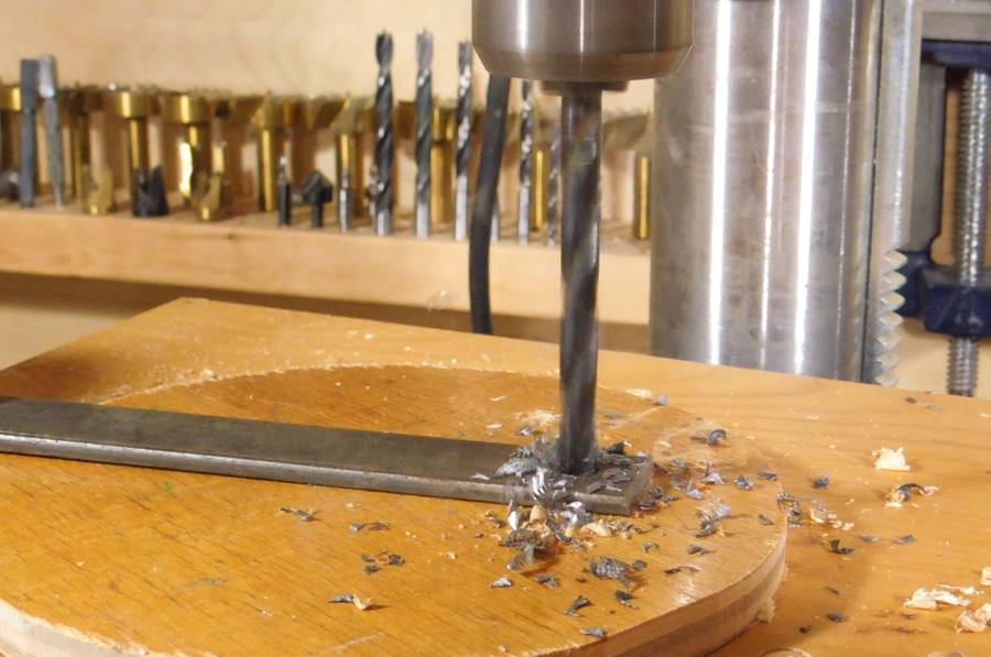 With a good sharp drill, drilling through metal works fine. Although with a hand drill,