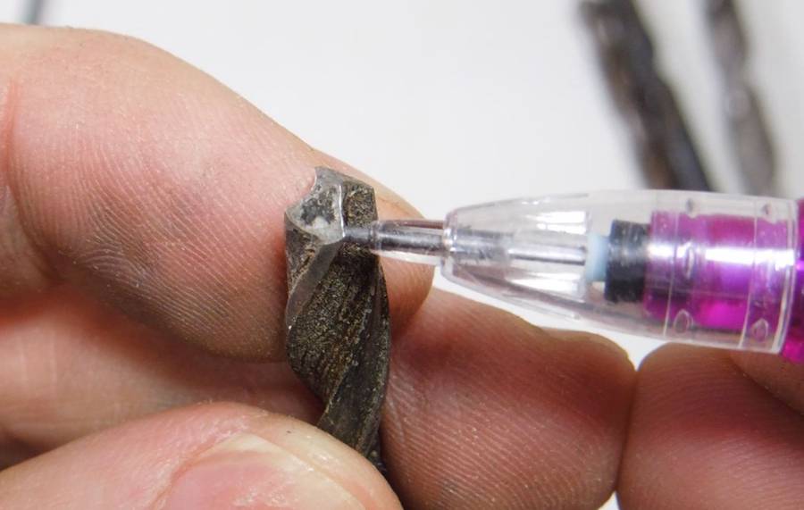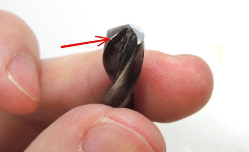 nick the opposite, just sharpened cutting edge of the drill. I did this deliberately on this