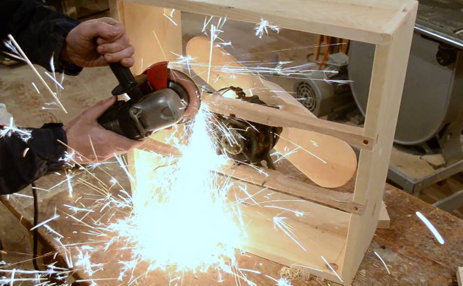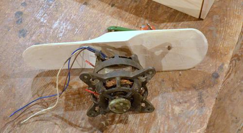 Like I did 25 years ago, I made a fan blade out of pine by cutting away at it at