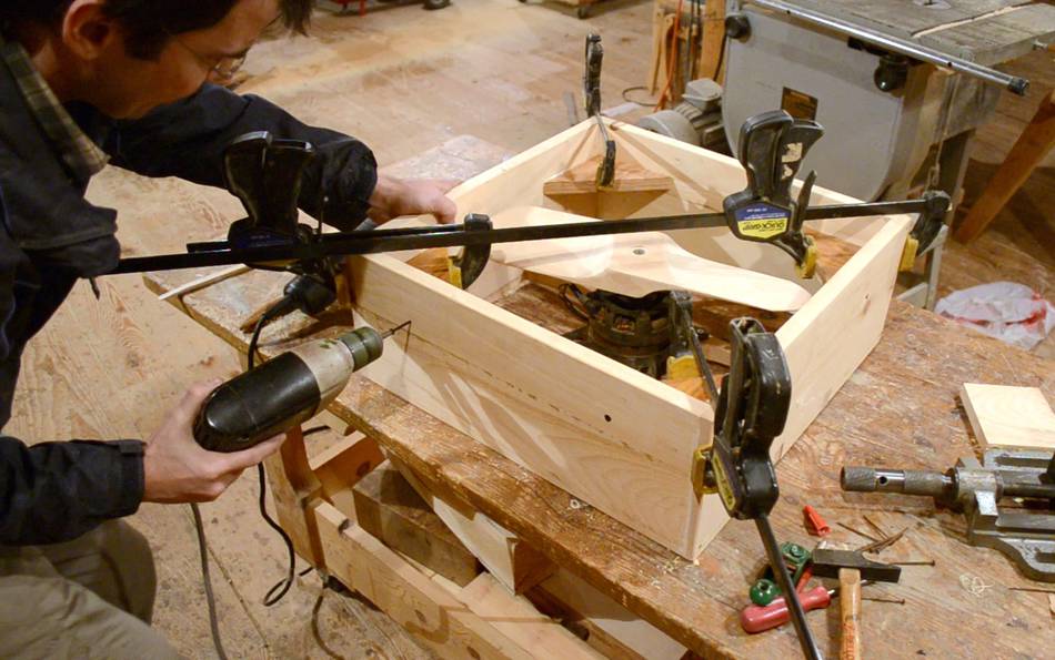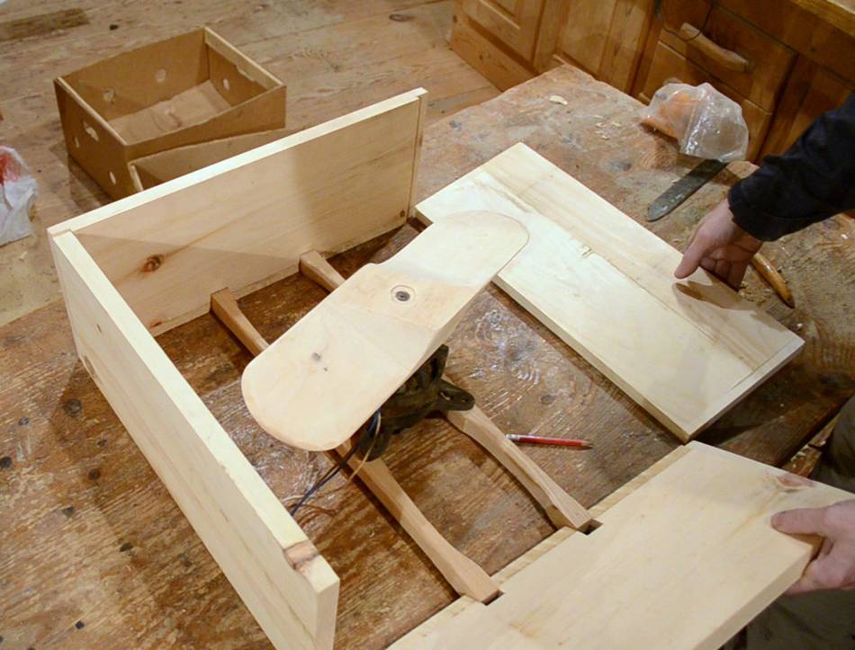 The enclosure is four boards, rabbet joined at the corners, with two hardwood rods