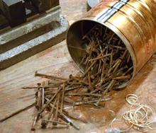 The nails I used were rusty ones. I nearly threw out a can of old nails on my dad's workbench when I cleaned up the shop, but it turns out, those were the only nails of the right size in the shop. I guess that's why they were on the workbench!