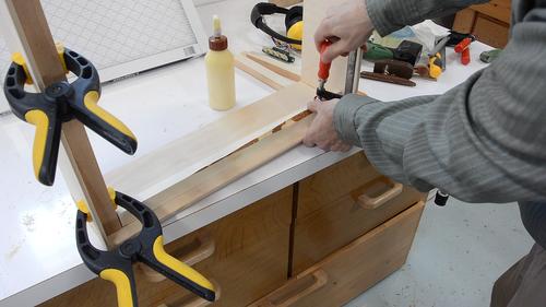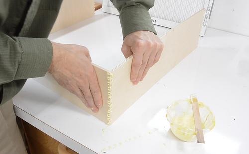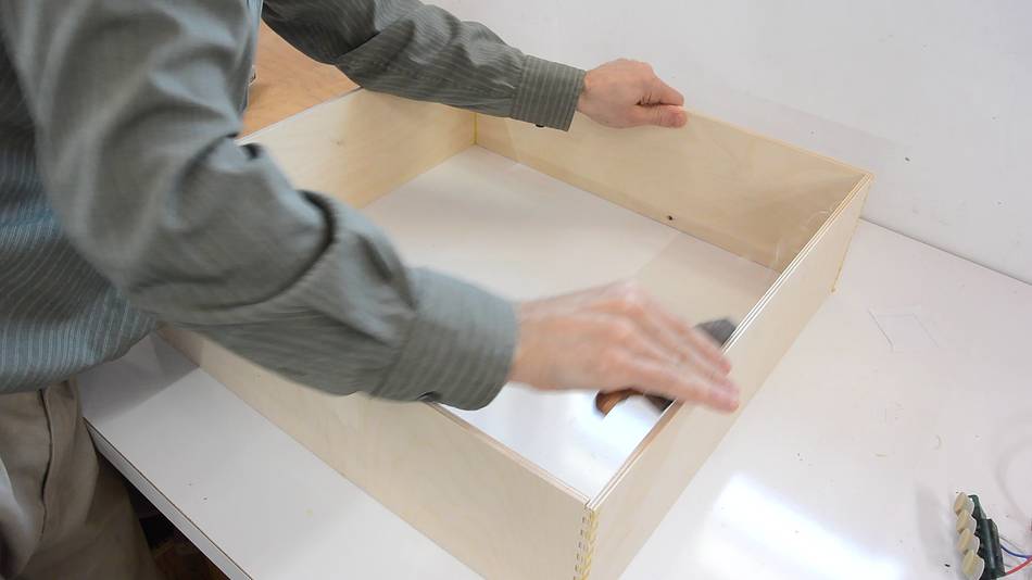 Then gluing a strip of wood near the edges to fix how far into