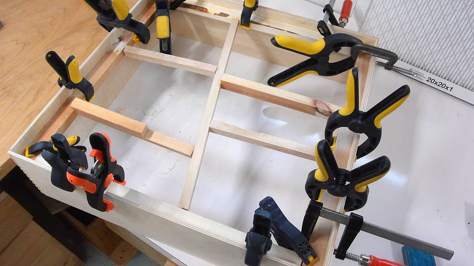 Once I established how far back the front panel should go, I glued some