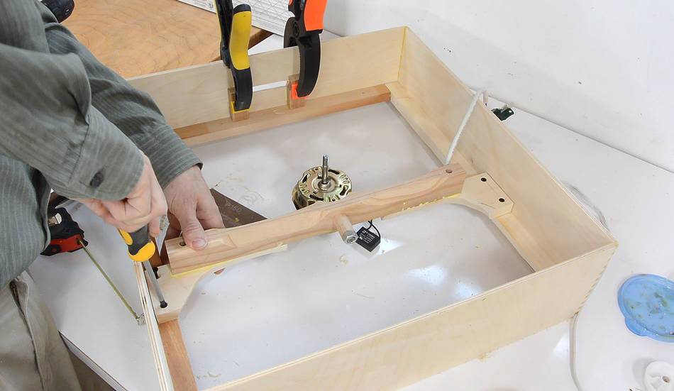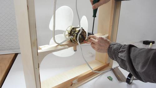 Placing the fan motor and blade on top of the filter (with a spacer for