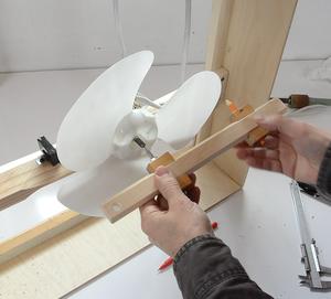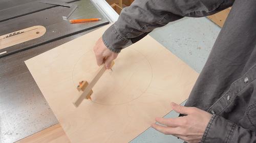 I set my beam compass to slightly wider than the fan's radius and marked a circle on the wood.
