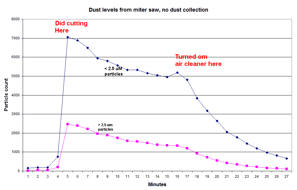 So I figured I'd do an experiment to see how much dust a miter saw puts in