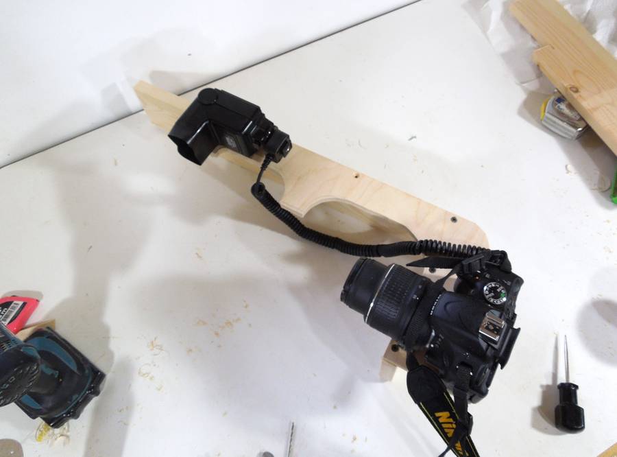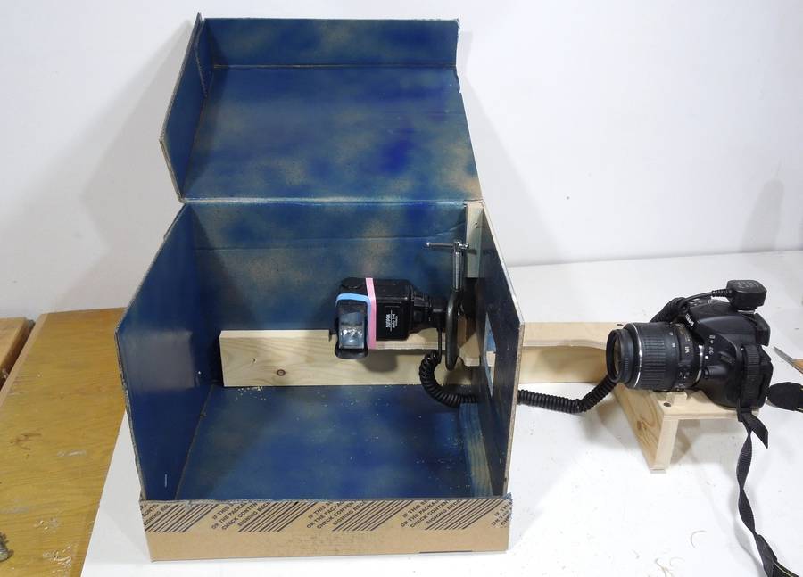 My first idea was to aim the flash directly at the camera, with an obstruction in