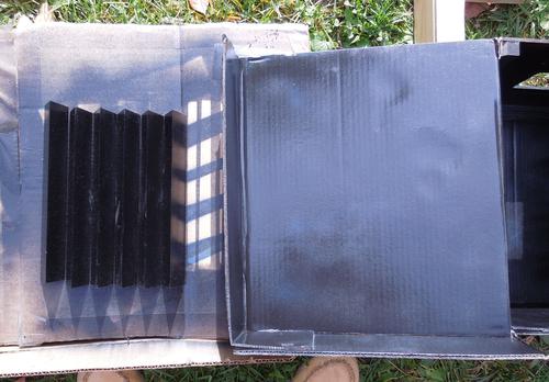 In this photo, looking down at the fins at left and some black painted cardboard at right. The black painted