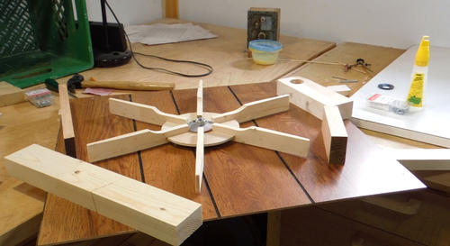 I made a six-bladed impeller out of some pieces of pine and some 1/4"