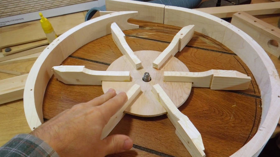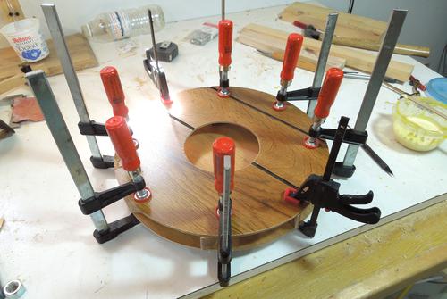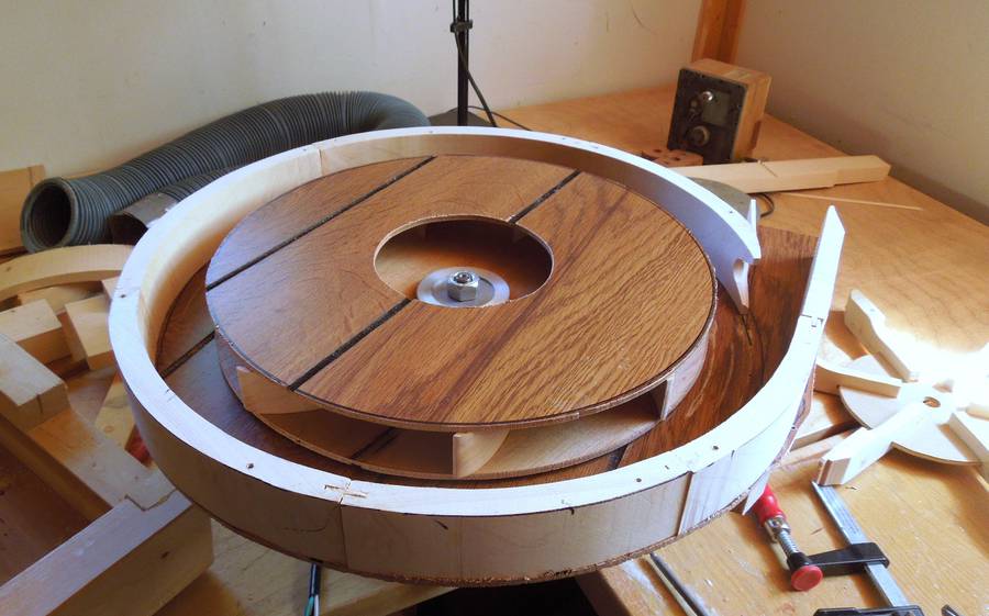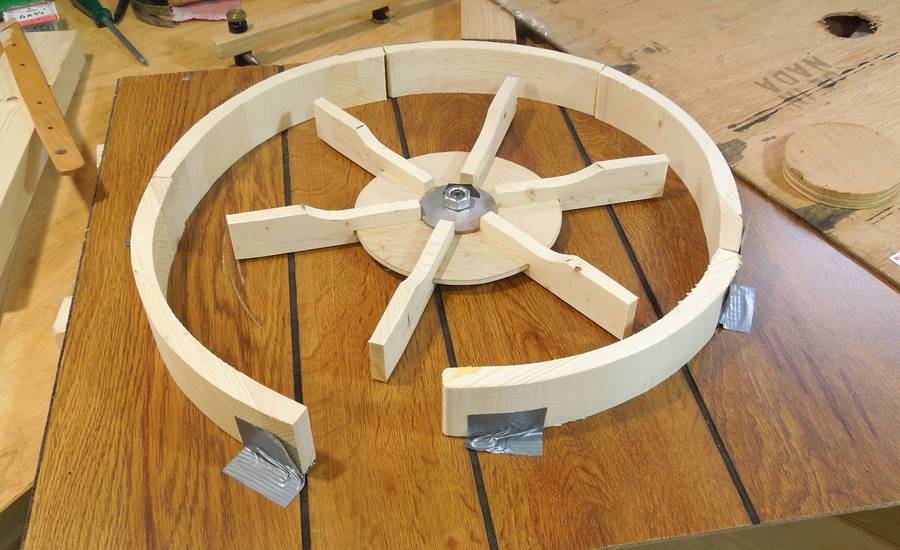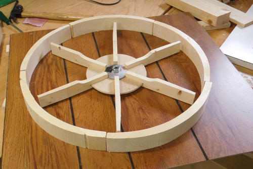 on the bandsaw, and started to assemble an eight-bladed curved blade impeller.