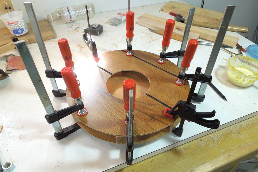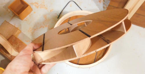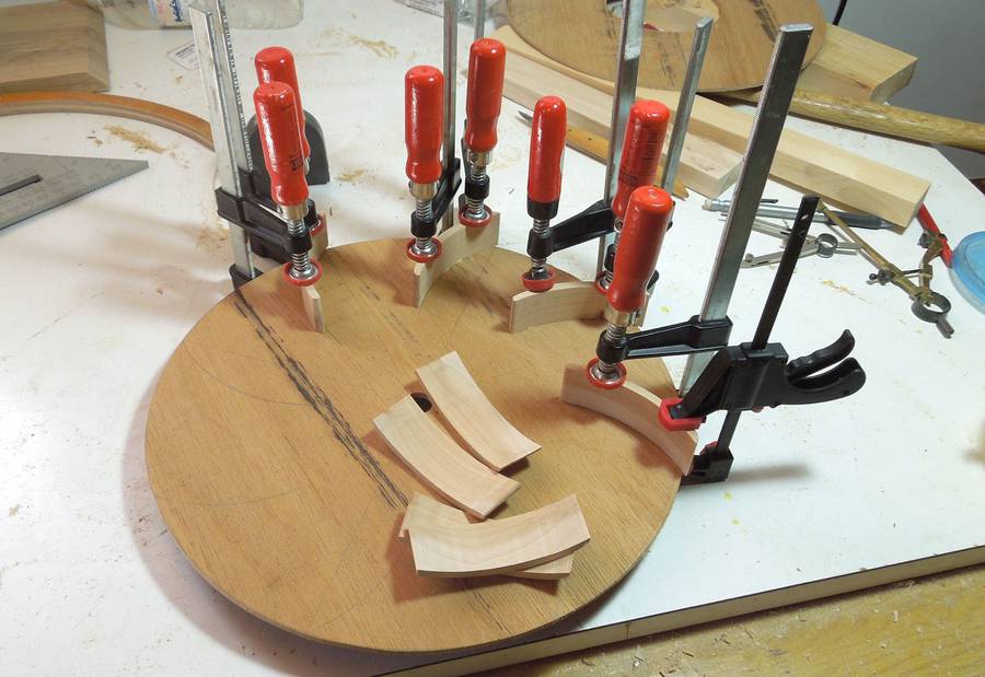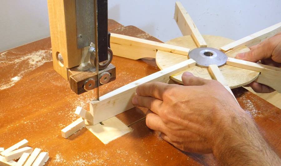 I cut hardwood pieces on the bandsaw, sanded the inside edges smooth,