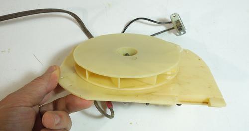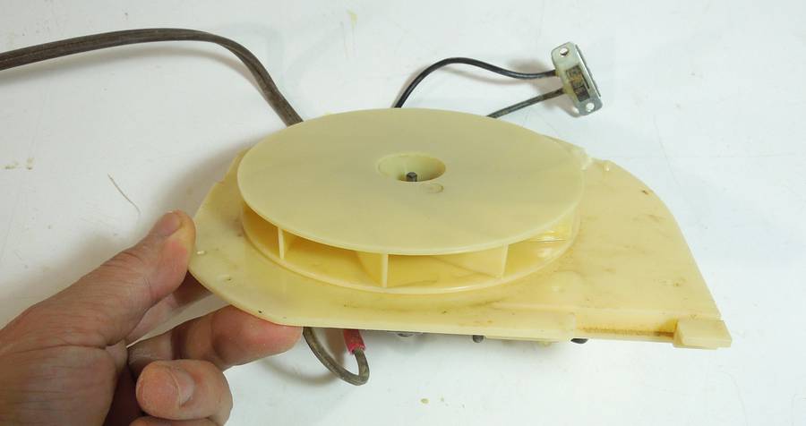 Plugging it in, I found that the motor was only turning a few hundred RPM. The air resistance of the impeller was too high a load for the motor, so it never got up to speed.