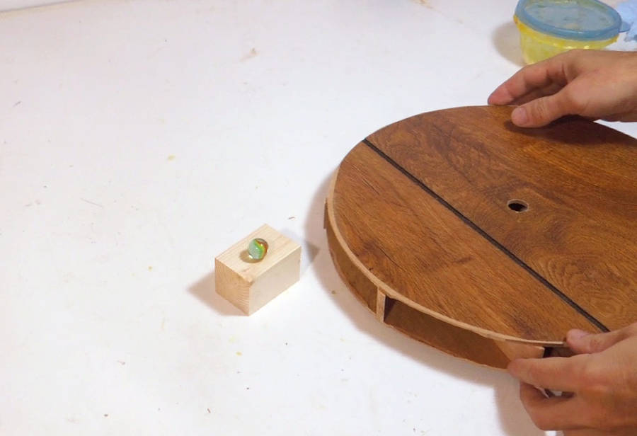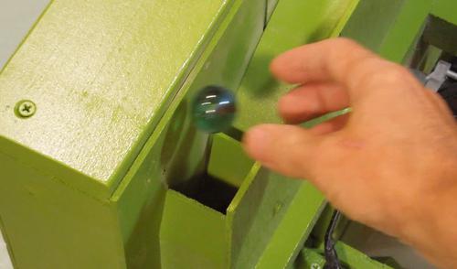 on a block of wood. The marble was just large enough not to fit through the 5/8"