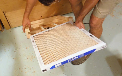 by sliding a block of wood over where the air gets pulled into the filter box.