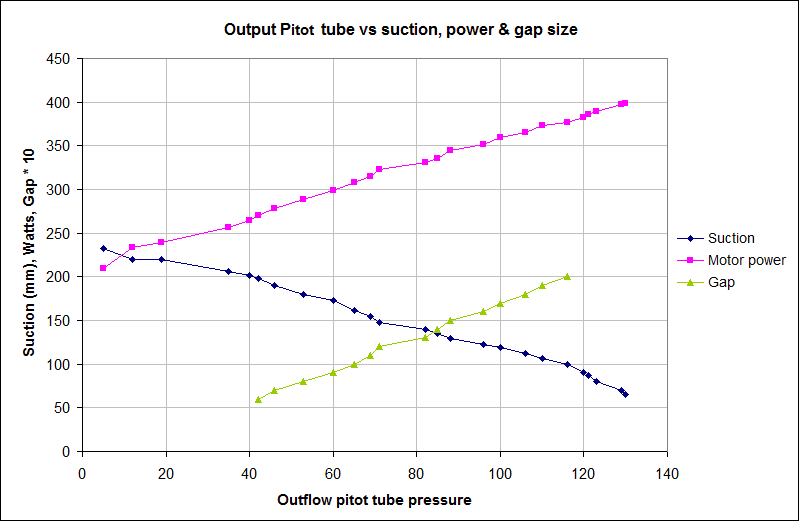 So I took a lot of readings and graphed vacuum, motor power, and air gap size