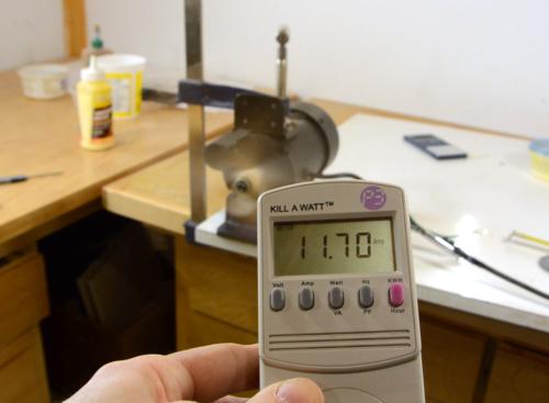 The blower blows surprisingly hard, and measuring the suction with my manometer, it's equivalent to a 36 cm water column, or about 14". That's quite a lot, substantially more than my big dust collector, and twice as much as my cheap dust collector