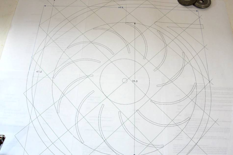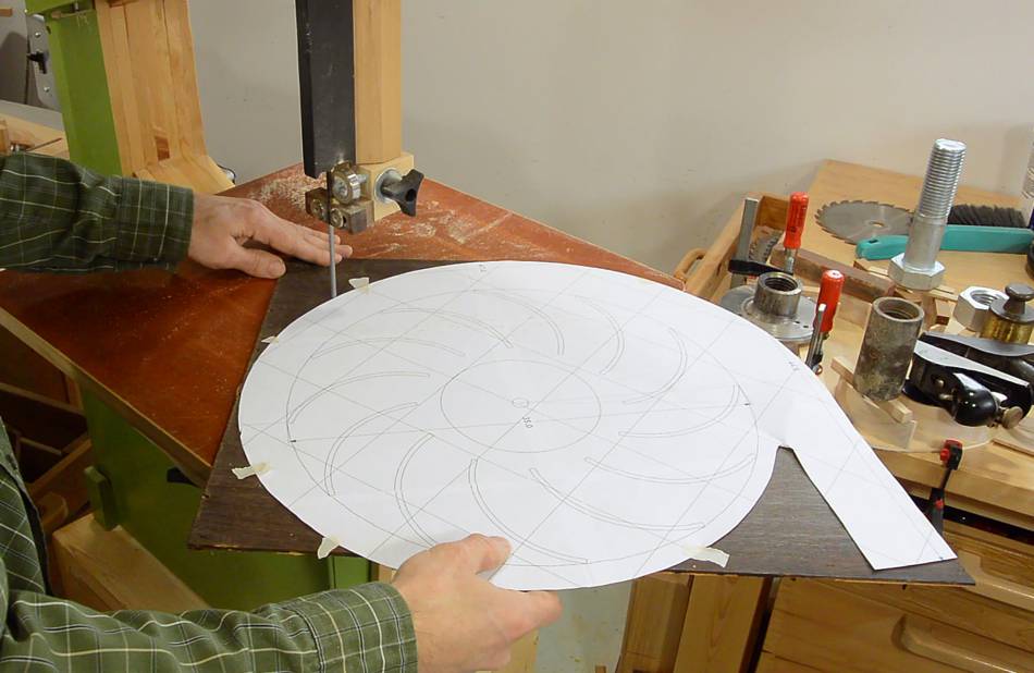 of the impeller on my bandsaw. Cutting from the paper template