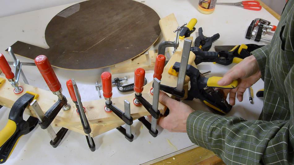it pressed against a flat table top while gluing, and clamps would