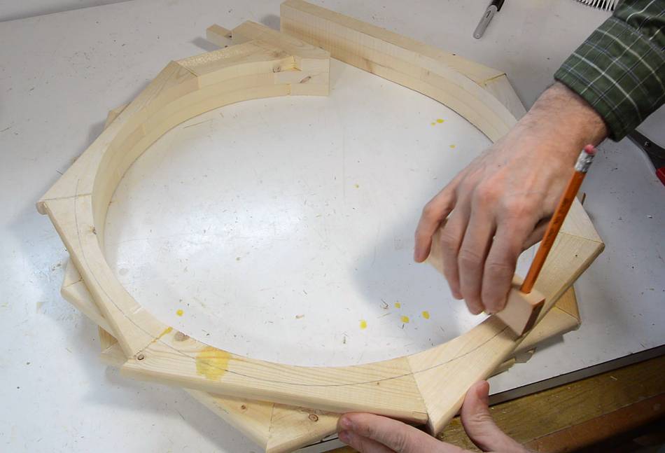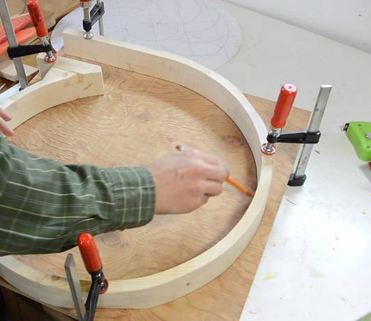 arcs on the wood with a compass.