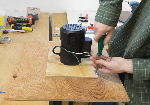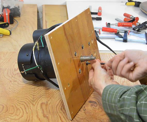 I then clamped the rotor housing on a piece of plywood. I used my
