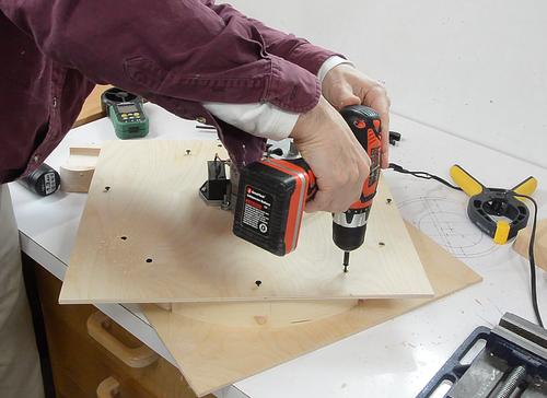 a yard sale. Here I'm jigging things up for screwing the pieces together.