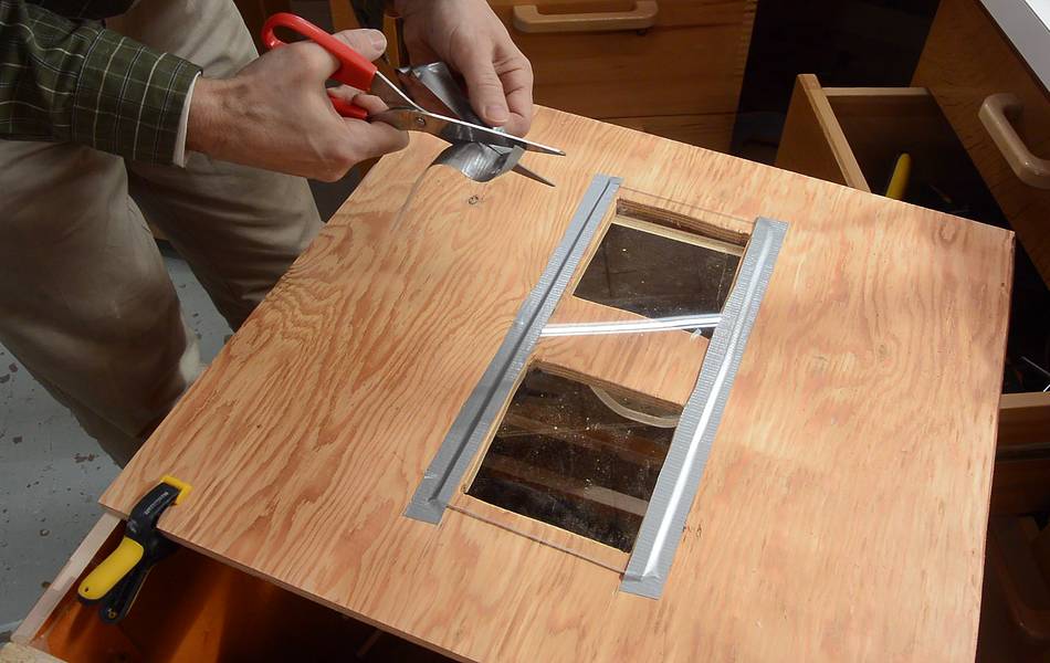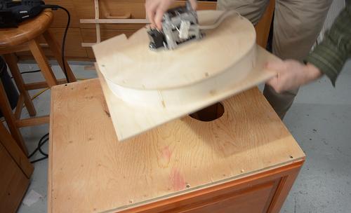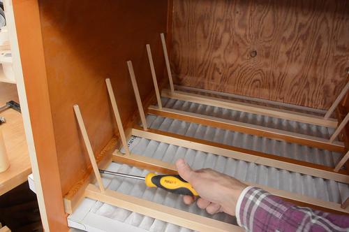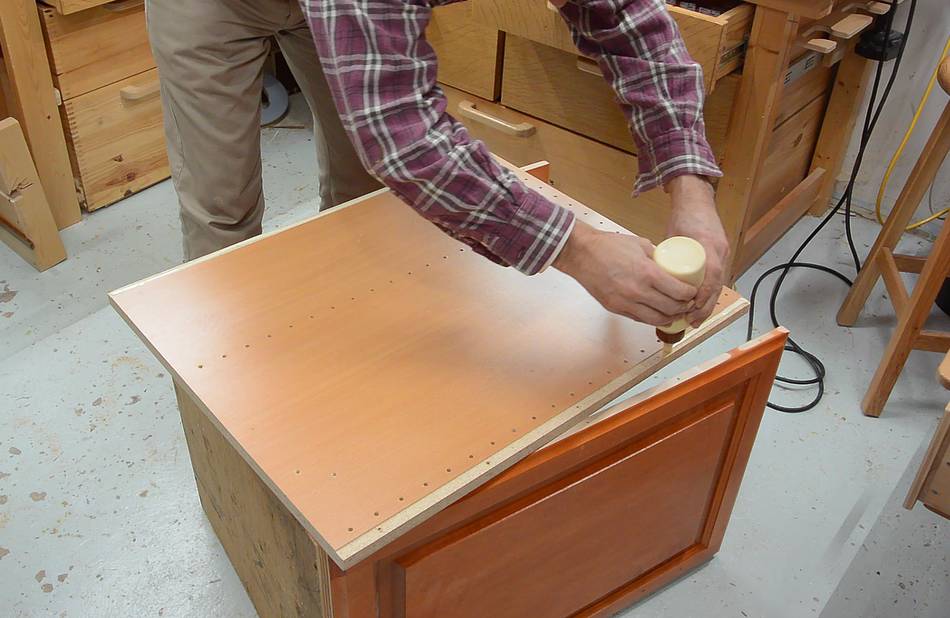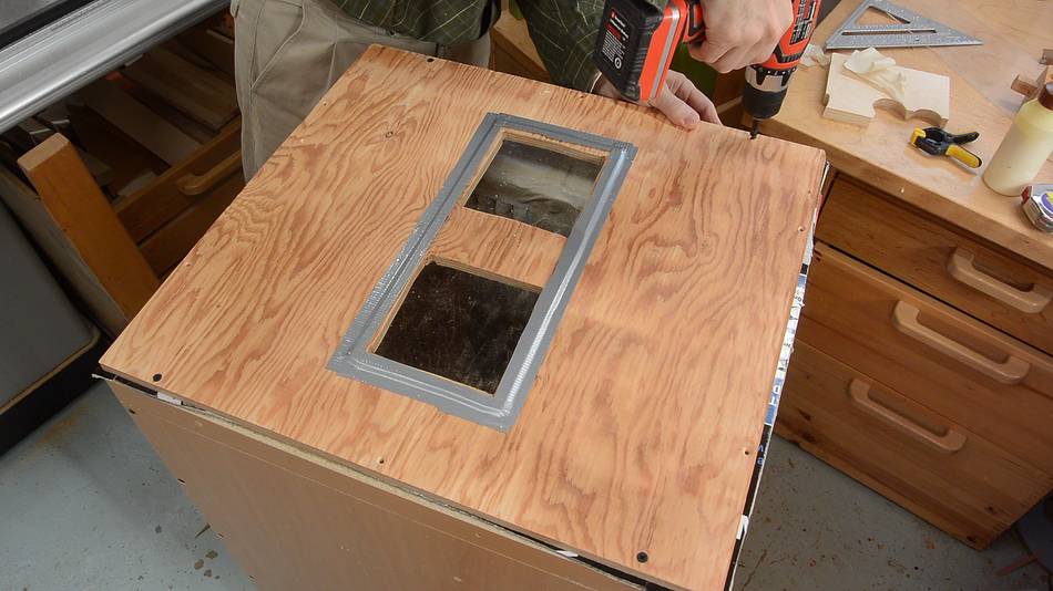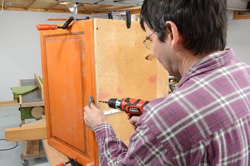 Screwing the top plywood onto the doors. The plywood only overlaps the doors