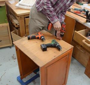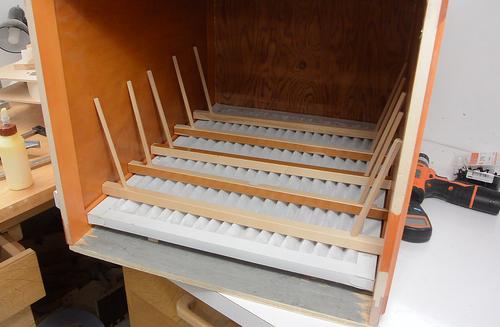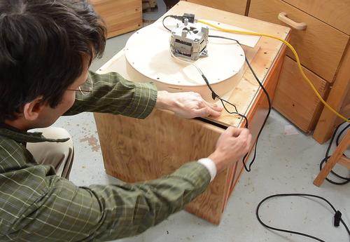 At right, screwing on what will be the "back" of the box.