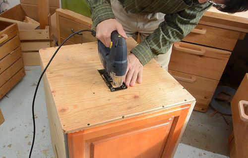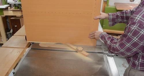 I glued most of the joints, so I cut away the melamine coating along the edges where it joins with the kitchen cabinet doors.