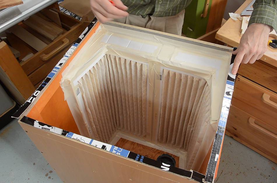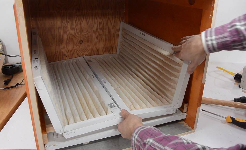 The masking tape I used to hold up the filter really did not hold up. I replaced it with duct tape, but that also was unable to hold up the filters over time. I made a video about that. I screwed some pieces of wood in to actually hold the filter (and tape) in place.