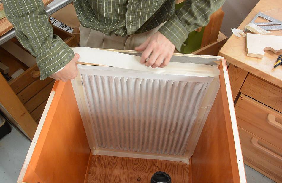 Then installing the first filter. I'm using masking tape to seal into